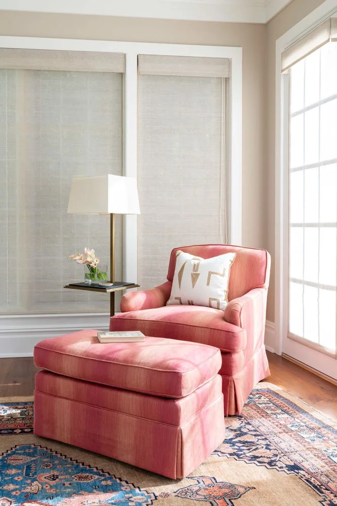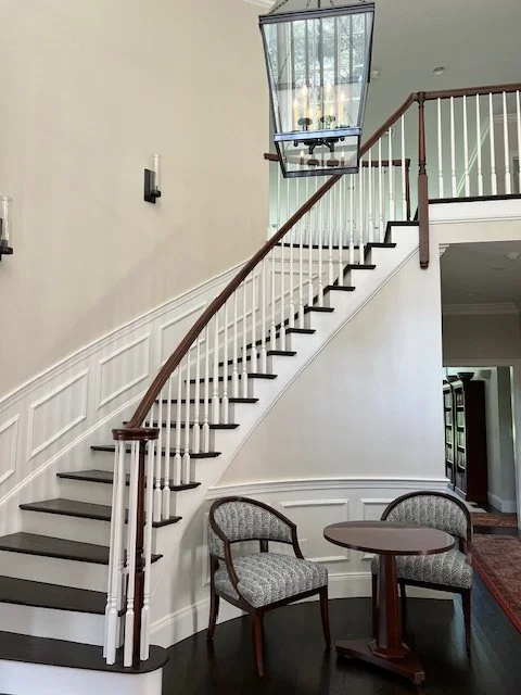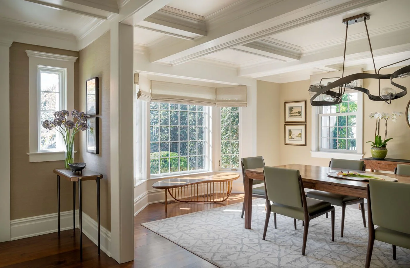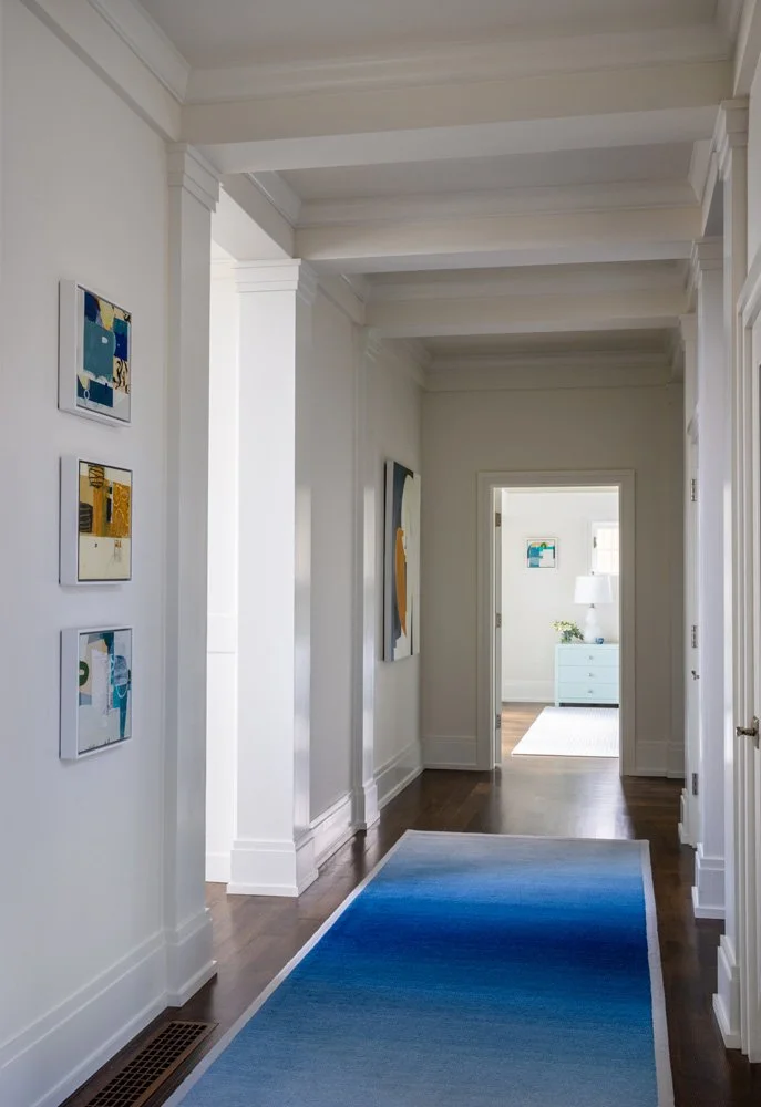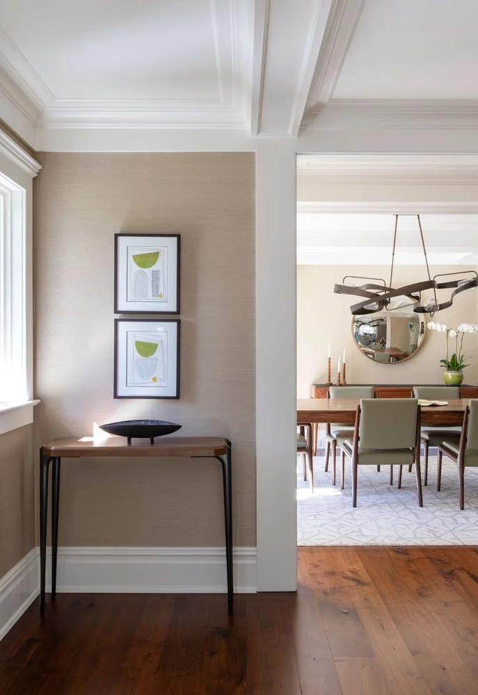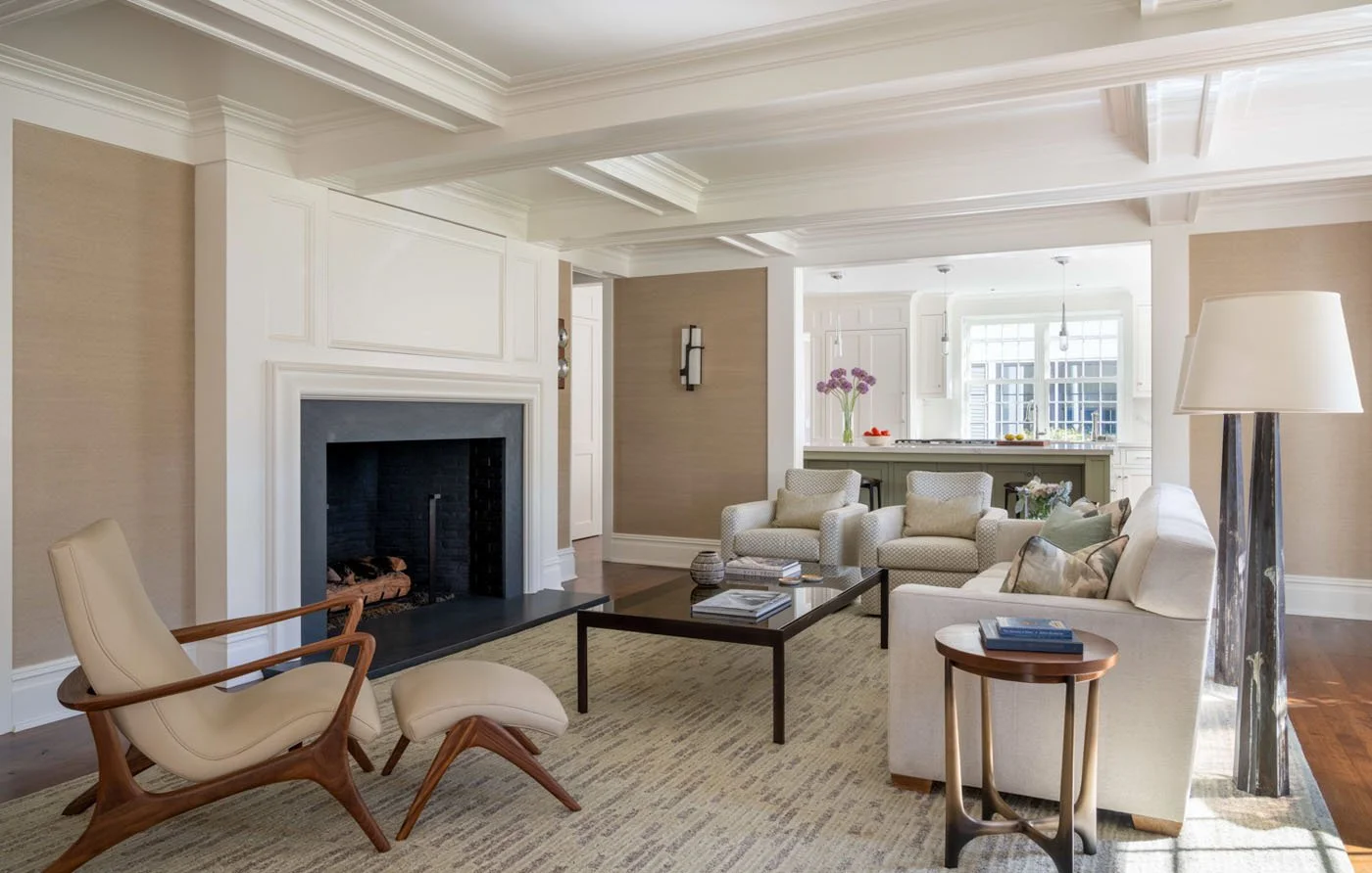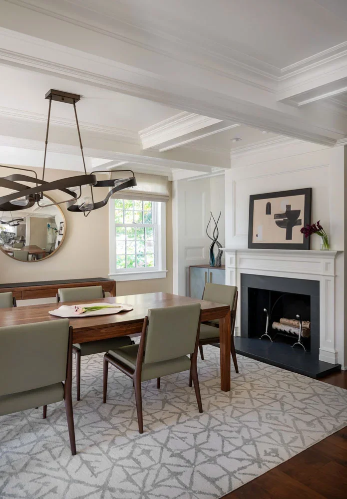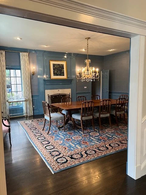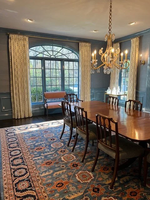 Located in the adorable town of Essex, CT this 18th century traditional home has a new life as an earthy, modern interior. The owners’ unique existing furniture and art blend perfectly with the architectural elements and new modern furnishings. Adding new custom rugs throughout add the softness and warmth one needs on those chilly New England winter days.