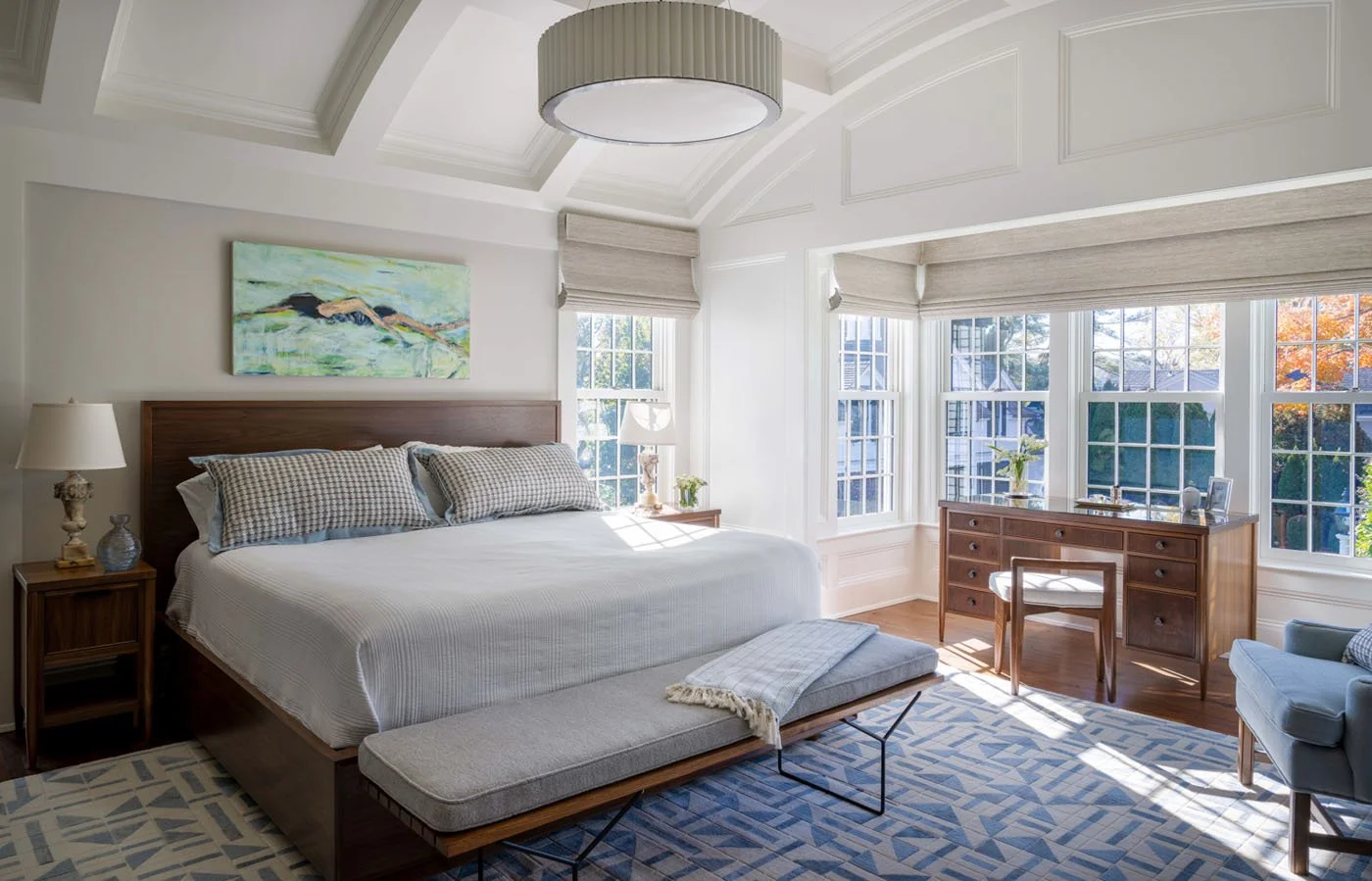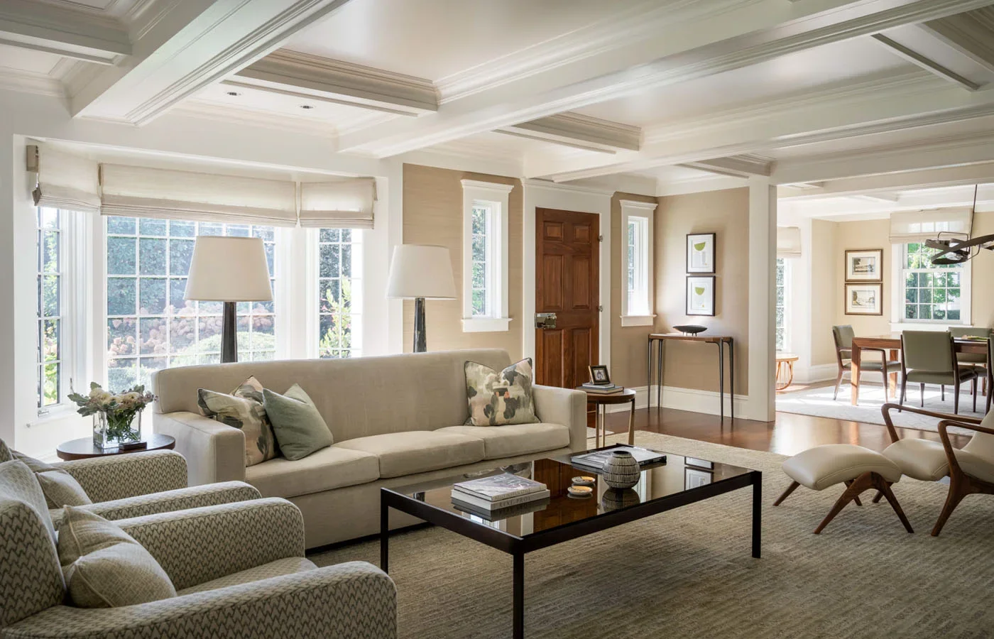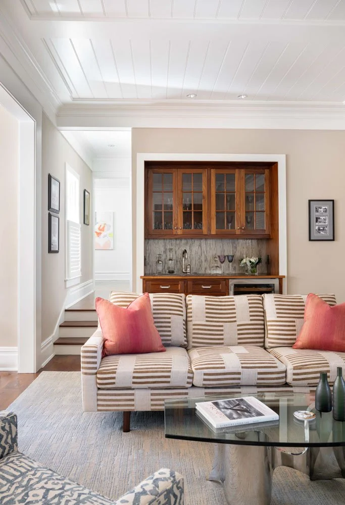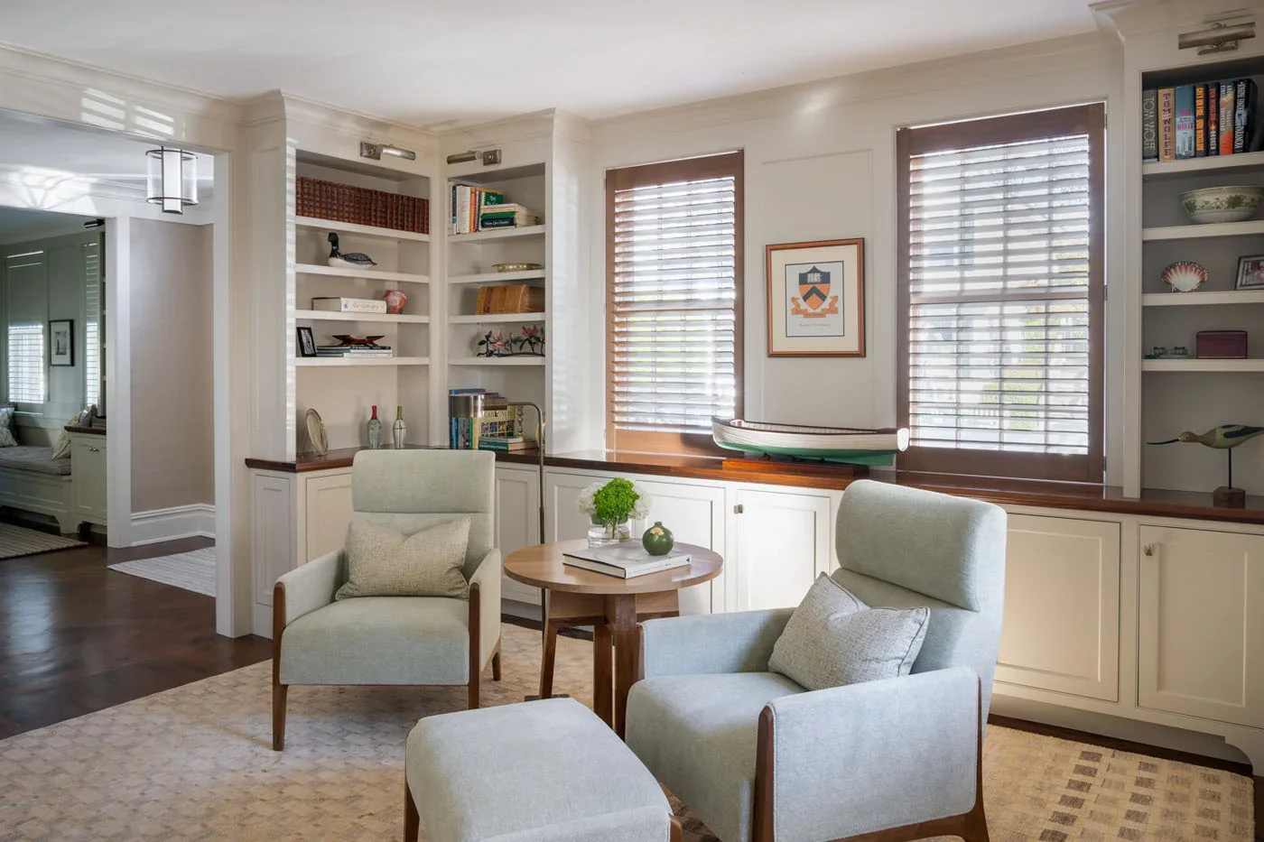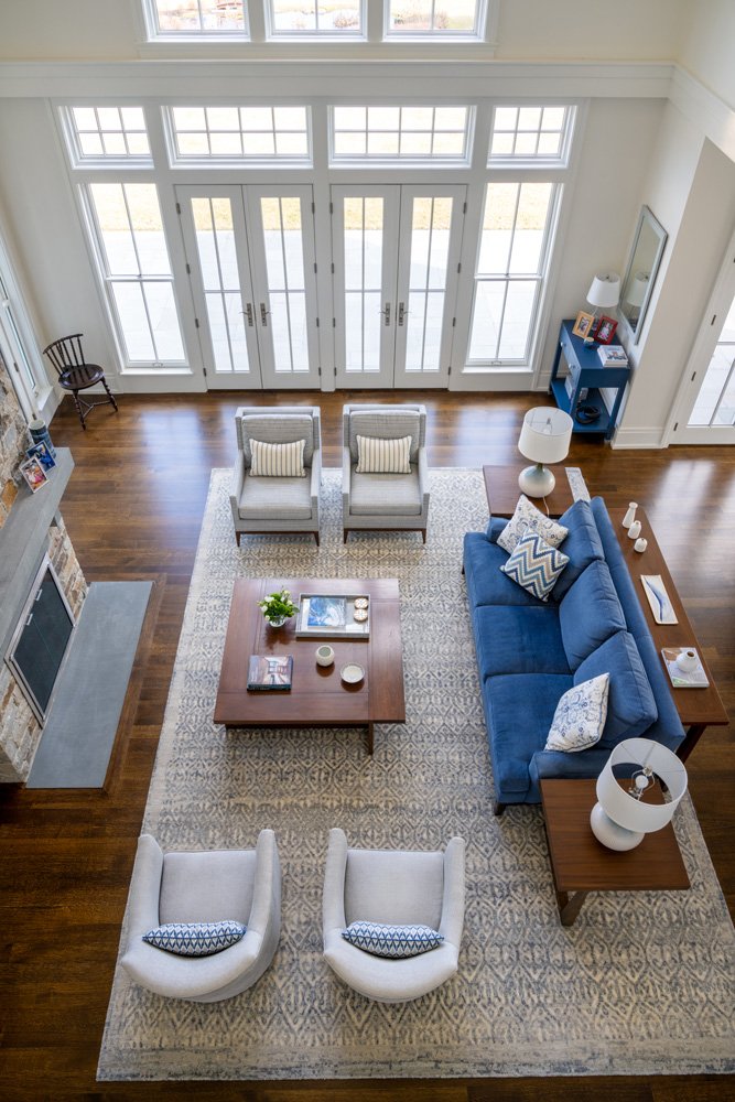 This custom built transitional home along the Narragansett Bay in Rhode Island needed to have the warmth and ease of living of the owners past homes but also function as their new forever home with the spirit of Coastal living throughout.