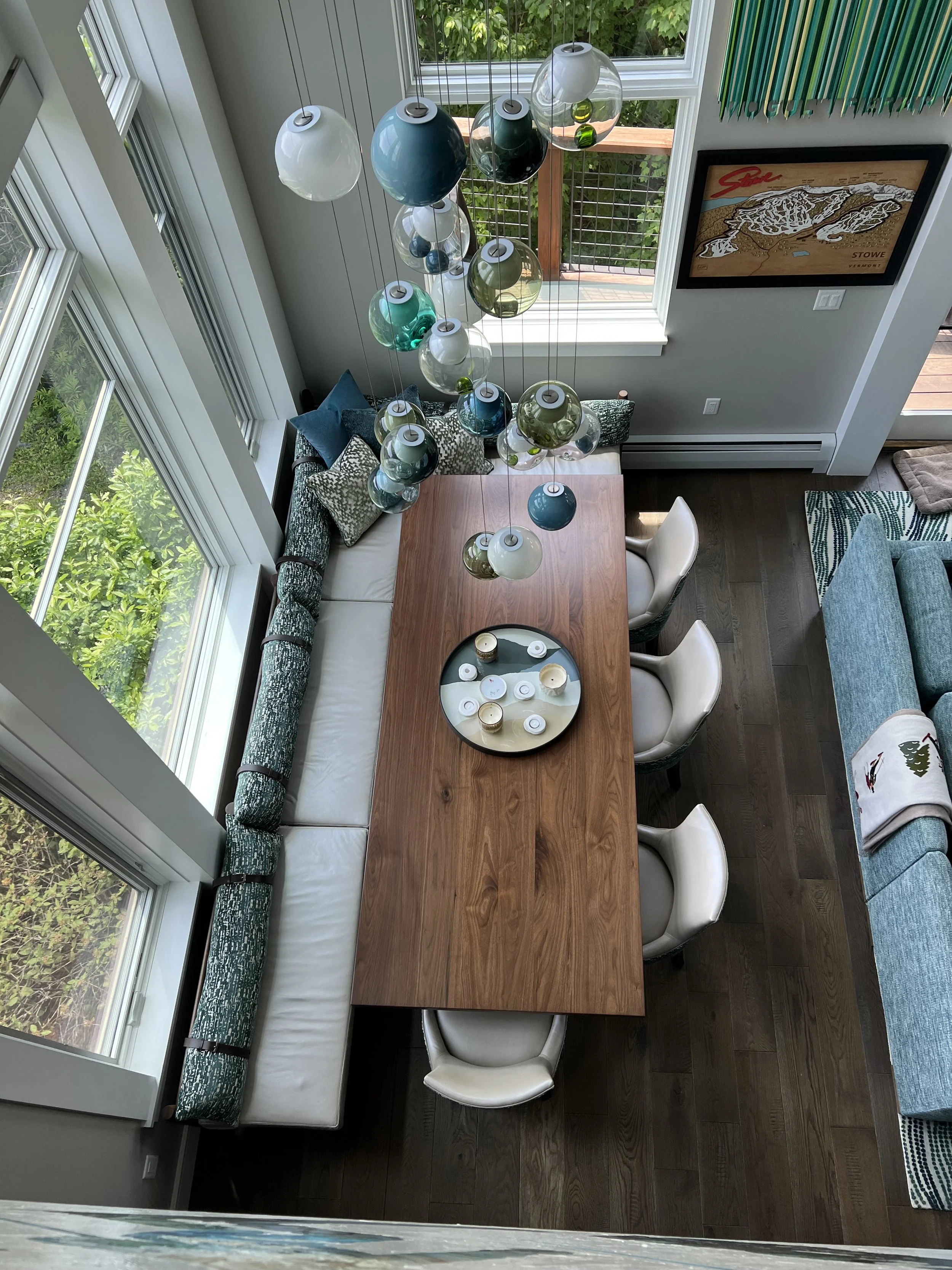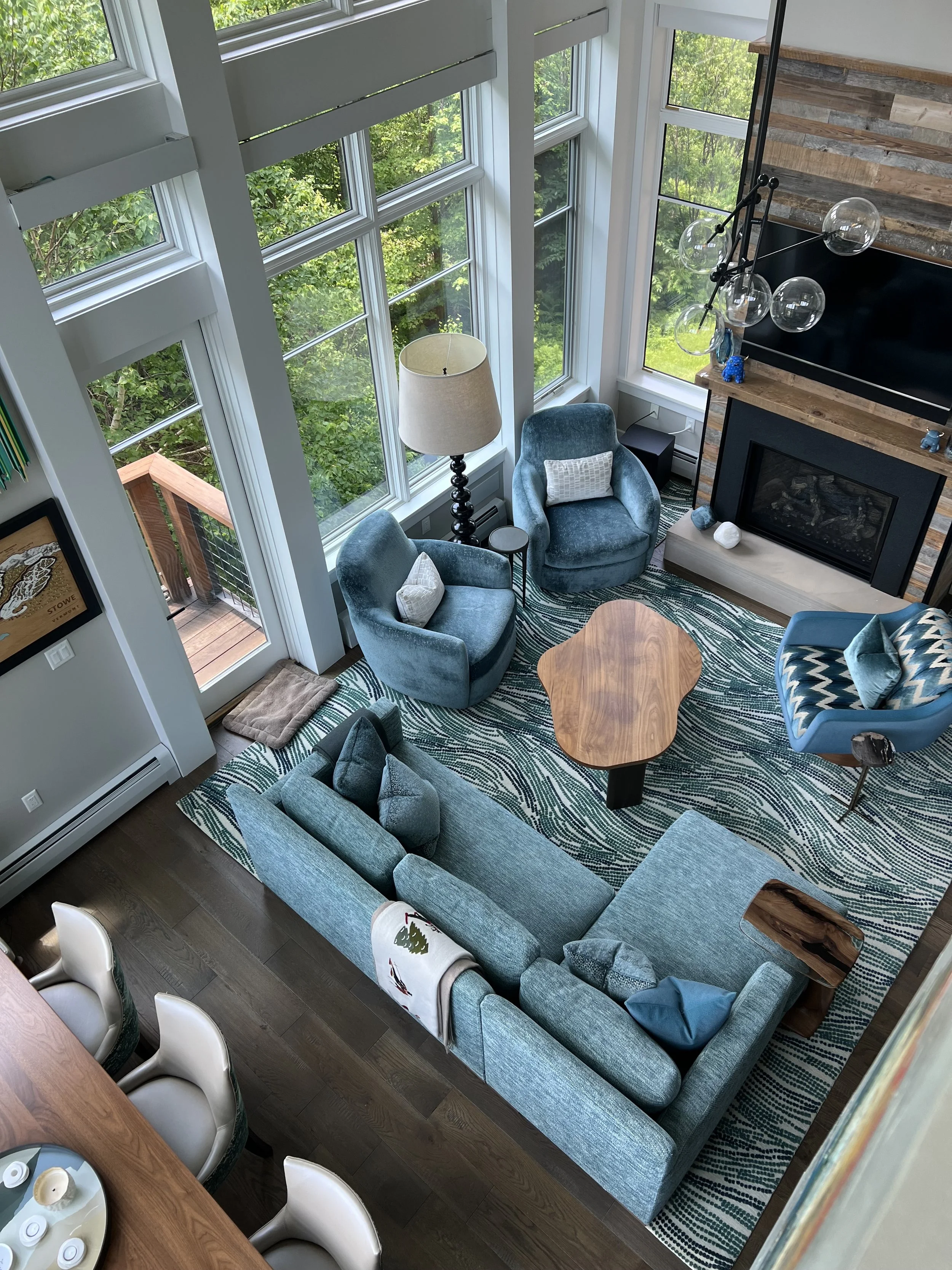 Located at the base of Spruce Peak Mountain adjacent to Mt. Mansfield this Modern townhouse needed to be comfortable and a true representation of the clients’ aesthetic. Although ski season is when the residence shines the family visits Stowe year round.